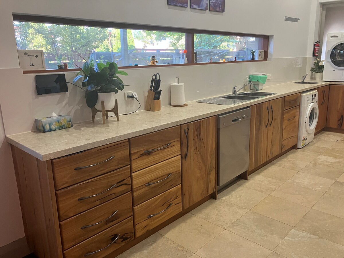 My apartment is warm & inviting. The bedroom is luxurious with a beautiful bathroom with claw foot bath. Fully equipped Kitchen, laundry & leafy back yard, bbq and alfresco kitchen. The family room includes a dining area, lounge & big screen Netflix TV. While the apartment is under the same roof as the three front rooms that we rent, it is completely private and separated by a lockable door, ensuring your own space and comfort. The entire apartment is yours to enjoy during your stay