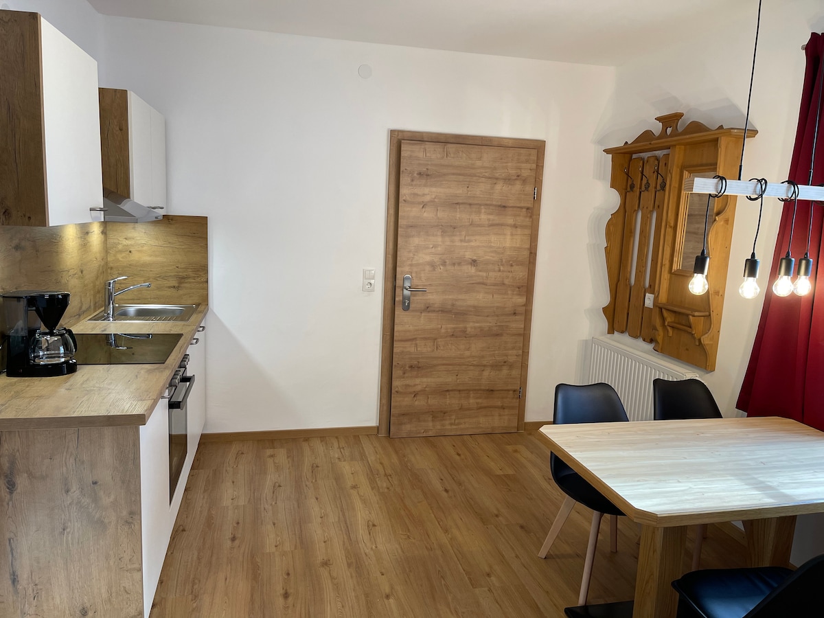 The completely new 2-room apartment "Löffler" impresses with coziness and Tyrolean charm. The lovingly furnished living/dining room with the custom-made and fully equipped kitchen as well as a Tiwan (sofa) invites you to relaxed evenings. The bedroom with double bed and en-suite bathroom ensures a good night's sleep. An apartment that is perfect for a break for two.