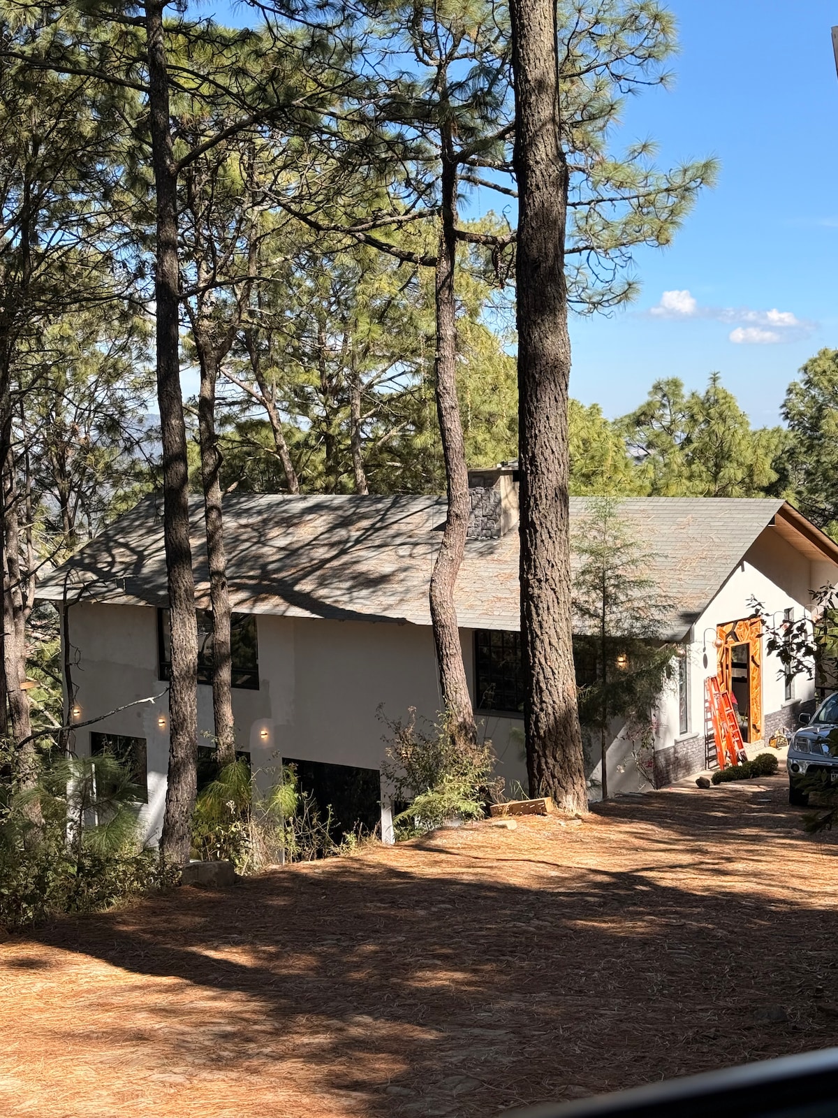 Disfruta de una cabaña en el bosque totalmente equipada para que tu experiencia sea inolvidable. Consigue un descanso de lujo en sus colchones de calidad, diviértete en su terraza con asador y estufa, ten una noche romántica en su terraza con chimenea. Deja que tus hijos corran y rían en la explanada jugando en la casita infantil y quemen bombones en su fogata. Ubicada dentro de la seguridad del fraccionamiento Los Cazos con acceso a La Cascada El Salto.
