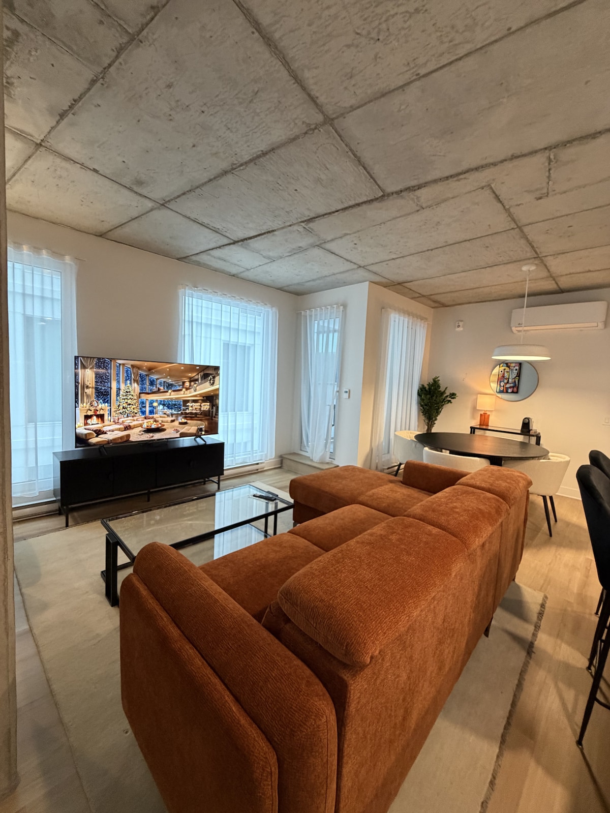 Welcome to our stylish, thoughtfully designed apartment in the heart of Old Montreal. Ideal for couples, families, or business travelers seeking comfort in one of Montreal’s most iconic neighbourhoods. Just steps from the Old Port, cobblestone streets, cafés, and major landmarks. The building is peaceful and secure. Place-d’Armes and Square-Victoria metro stations are within walking distance for quick access to downtown and the rest of Montreal.