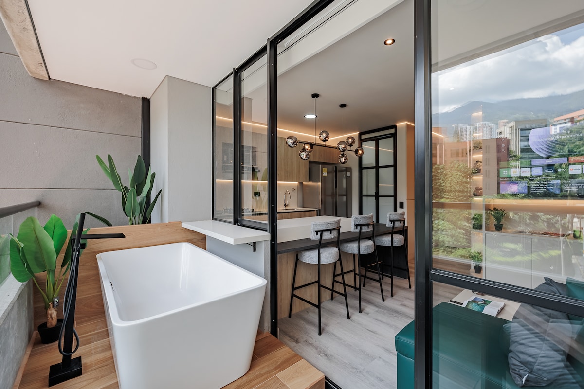 Romantic Luxury Apt · Balcony Tub · El Poblado·AC