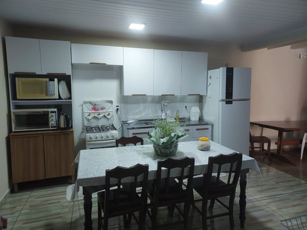 Stay in a comfortable edicule with 2 well-lit bedrooms, both with air-conditioning, ideal space for up to 5 people. The lodging has easy access to BR 277, which is the way to Foz do Iguaçu and Cascavel. It is close to restaurants, Country Club, CTG, City Hall, Sicredi and downtown. The guest will have access to a full kitchen and bathroom, which will be exclusive to their group.