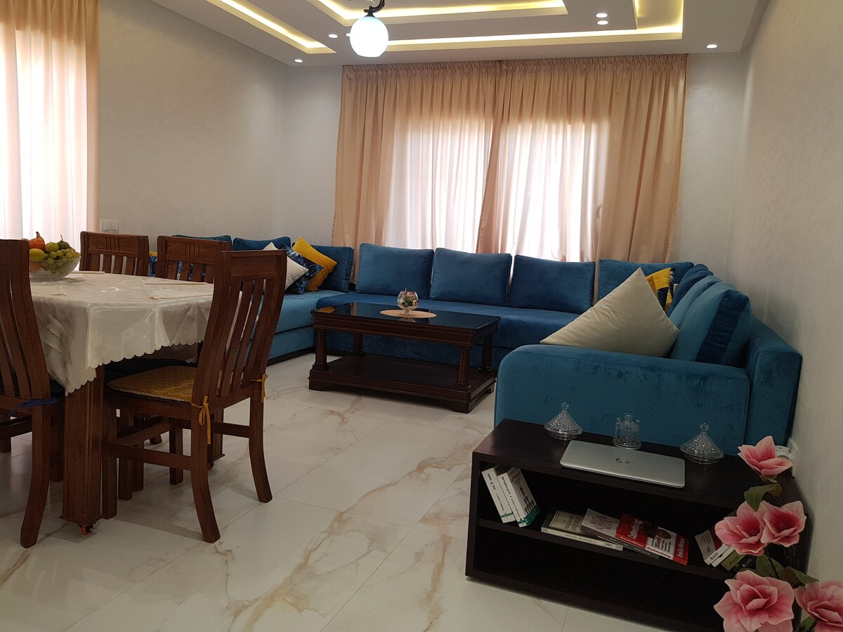 Welcome to our luxurious apartment in Mehdia Beach, where comfort meet seaside elegance. - 𝐋𝐨𝐜𝐚𝐭𝐢𝐨𝐧: Just steps away from the beach, our apartment offers easy access to Mehdia's vibrant seaside attractions. - 𝐂𝐨𝐦𝐟𝐨𝐫𝐭: Our apartment accommodates up to four guests, with a bedroom featuring either a queen-size bed or two single beds, plus two sofas in the living room. - 𝐒𝐞𝐥𝐟 𝐂𝐡𝐞𝐜𝐤-𝐈𝐧: with our unique access code system, allowing you to check in at your convenience.