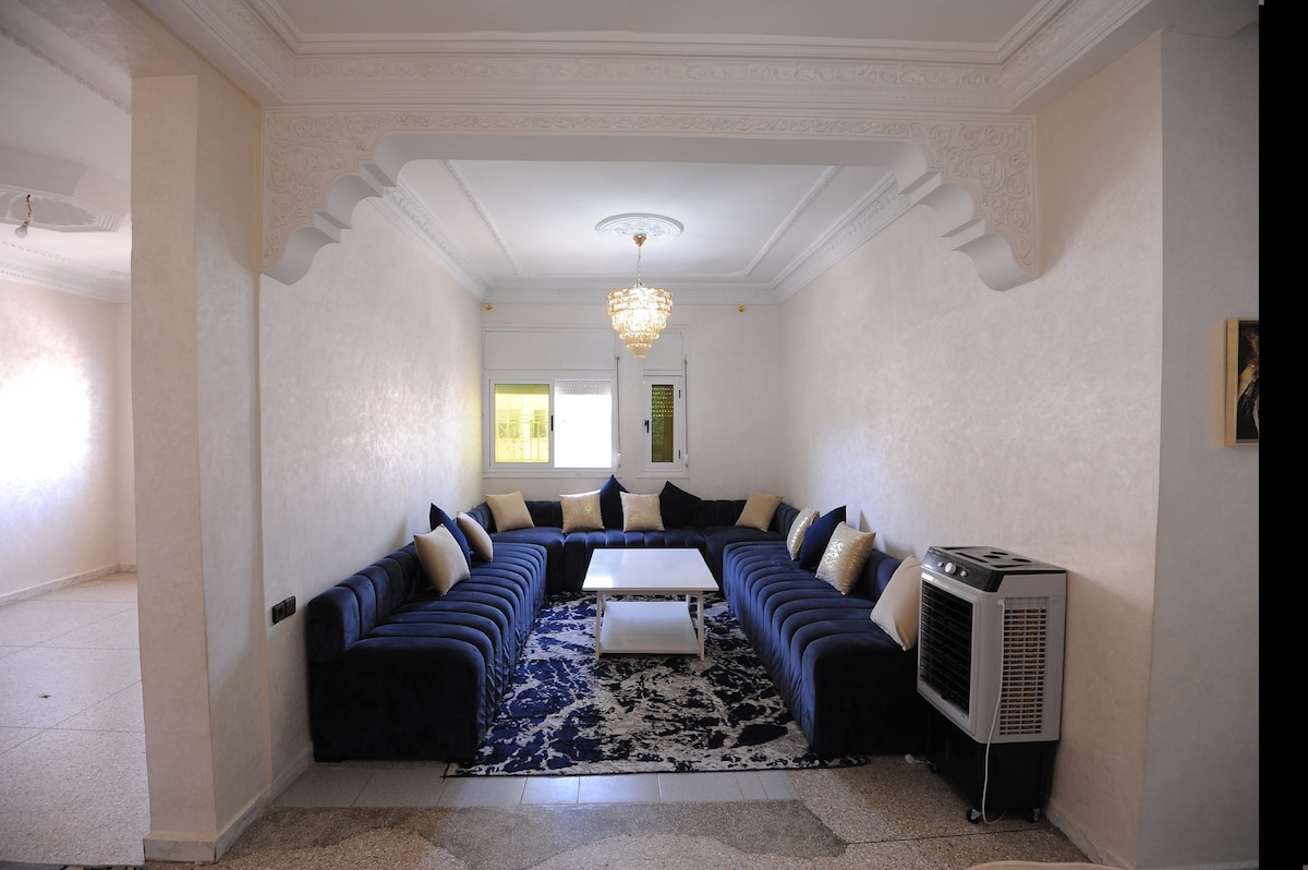Bring the whole family to this great place with lots of room for fun. Very nice apartment of 100 square meters, spacious, quiet and bright with 3 bedrooms and a large spacious Moroccan living room, ideal for families. Not too far from the Medina, 10 to 15 minutes by car, and not too far from the highway either. Please note rental is for married couples only. Moroccan law is clear on this, we appreciate your understanding.