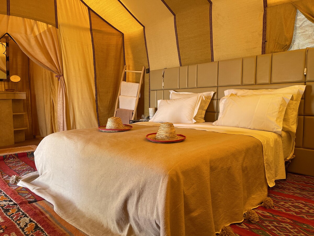 Hello our guests, our Arena Desert Camp is located in middle of the sahara desert of Merzouga Morocco, you will Enjoy your holiday in our camps. There is one bedroom in this house which contains a double bed. There is one bathroom, which has a toilet and sink and a walk-in shower. Linen and towels are all included to make your stay more enjoyable. House Rules: - Check-in time is 4pm and check-out is 10am. - Smoking is not allowed. - There are free parking on premises parking facilities available at the property. - Pets are not allowed at the property.