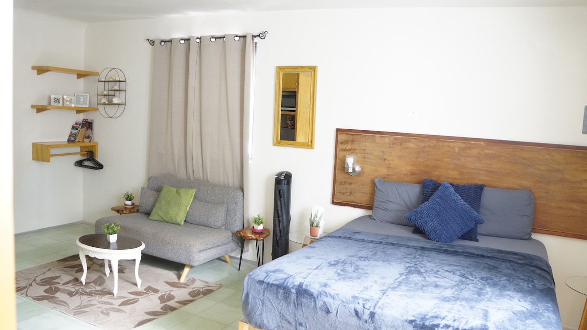 Full studio for your exclusive use. It has a private and independent entrance, so you will not have contact with anyone else and no areas are shared. The studio is conveniently located near various points of interest, including the A.D.O. bus terminal, Mercado 28 (food and crafts), Parque Las Palapas, Walmart, Avenida Yaxchilán, and Avenida Sunyaxché, where you can find restaurants such as La Parrilla, Pescaditos, 100% Natural, and Rooster. The airport is approximately 30 minutes away by car.