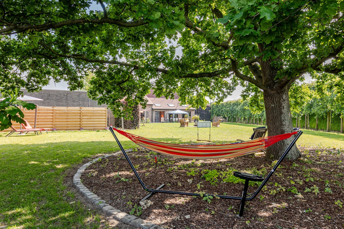 Holiday home for 15. Ideal for groups of friends or family, team building. With terrace and courtyard garden (BBQ, XXL chess game). Ideal starting point for walking and biking tours in the Pays des Collines. Explore the trail of the spring classics here. Polyvalent room with table tennis, darts, foosball, fitness equipment, music system ... We are happy to provide tips for getting off or booking a private balloon ride for you. Private parking.