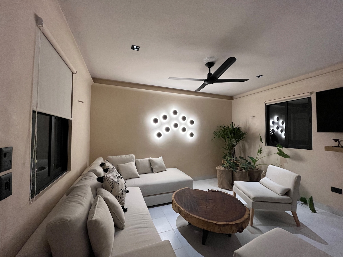 Welcome to one of the best lodgings in the heart of Mérida. Discover design, functionality, and tranquility in an exclusive private apartment. Enjoy a spacious living room with a TV center, a dining room next to a fully-equipped kitchen, and a private bathroom for personal use. Relax in the suite with a king-size bed and a closet for your belongings. It has a private mini-pool to relax. Our energy comes from solar panels, demonstrating our commitment to sustainability.