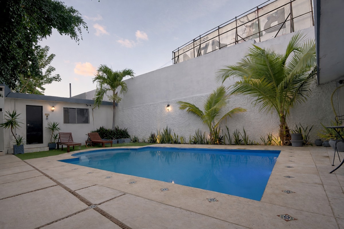 Welcome to tranquil Casita Azalea Rosa, a 1BR/1BA gem in Garcia Gimenes, ideally located near historic Centro and vibrant downtown Merida. Jump into the gorgeous pool, cook in the fully-equipped kitchen, and bask in a secure neighborhood. Perfect for a single or couple who needs a quiet haven to work during the day. Indulge in a blend of luxury, style and relaxation. Your Dream Getaway Awaits! *We apologize, but can't allow pets or service animals because of severe allergies in our family.