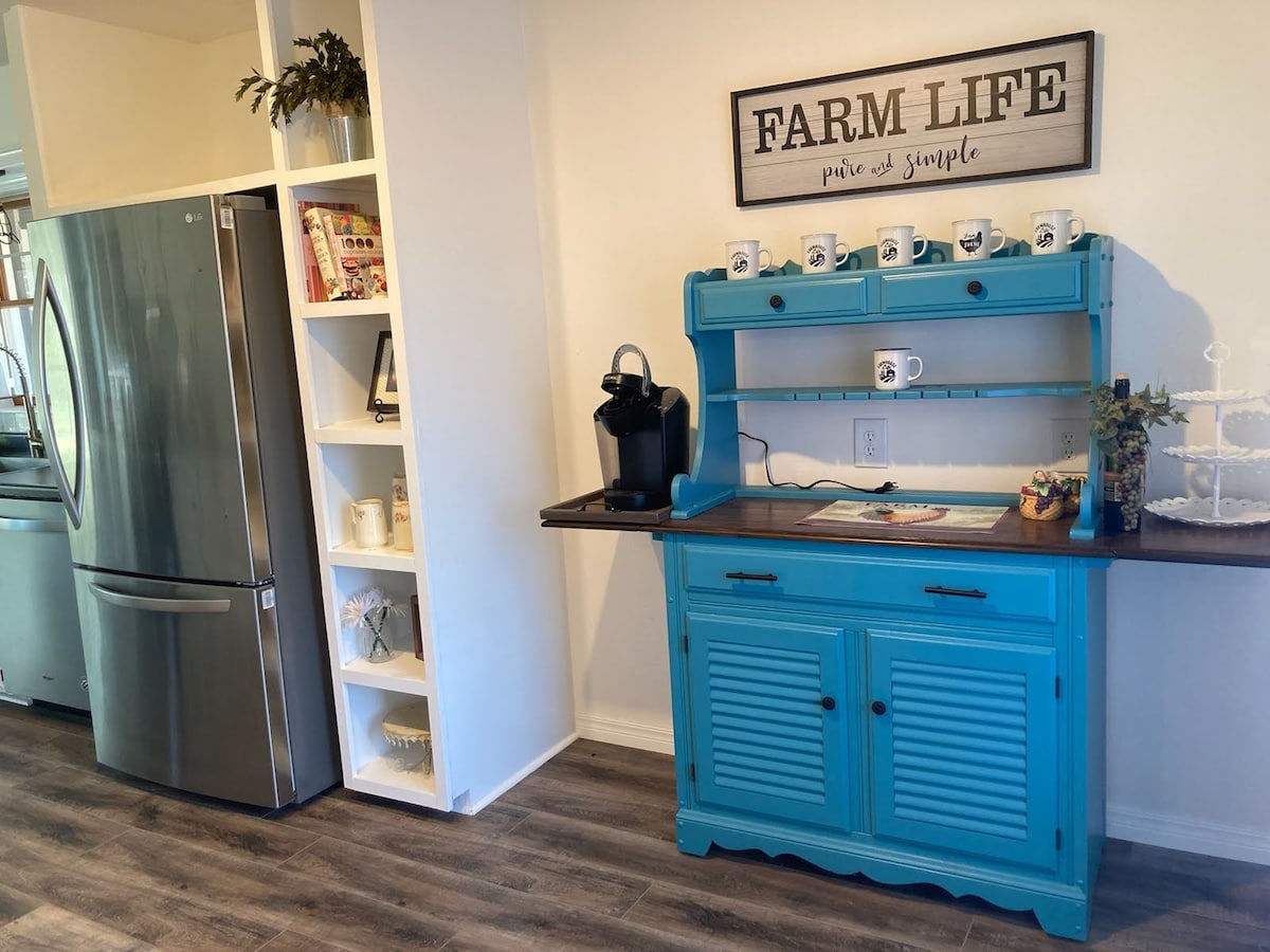 This guest house sits on a 27 acre farm, 7.5 miles east of Guthrie, Oklahoma. Whether you’re looking for a peaceful getaway or just passing through, this spot is perfect! With 2 donkeys and multiple cows on the property, you’ll get the full farm experience. Enjoy a fire under the stars and breakfast on the porch. This property is located 36 minutes from Edmond & 48 minutes from Oklahoma City. *Please note there is no WiFi available and cell service may be spotty*