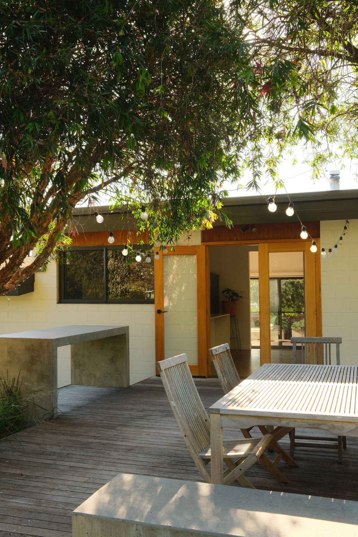 Cosy treehouse vibes. 3 bedrooms. Pooch friendly.