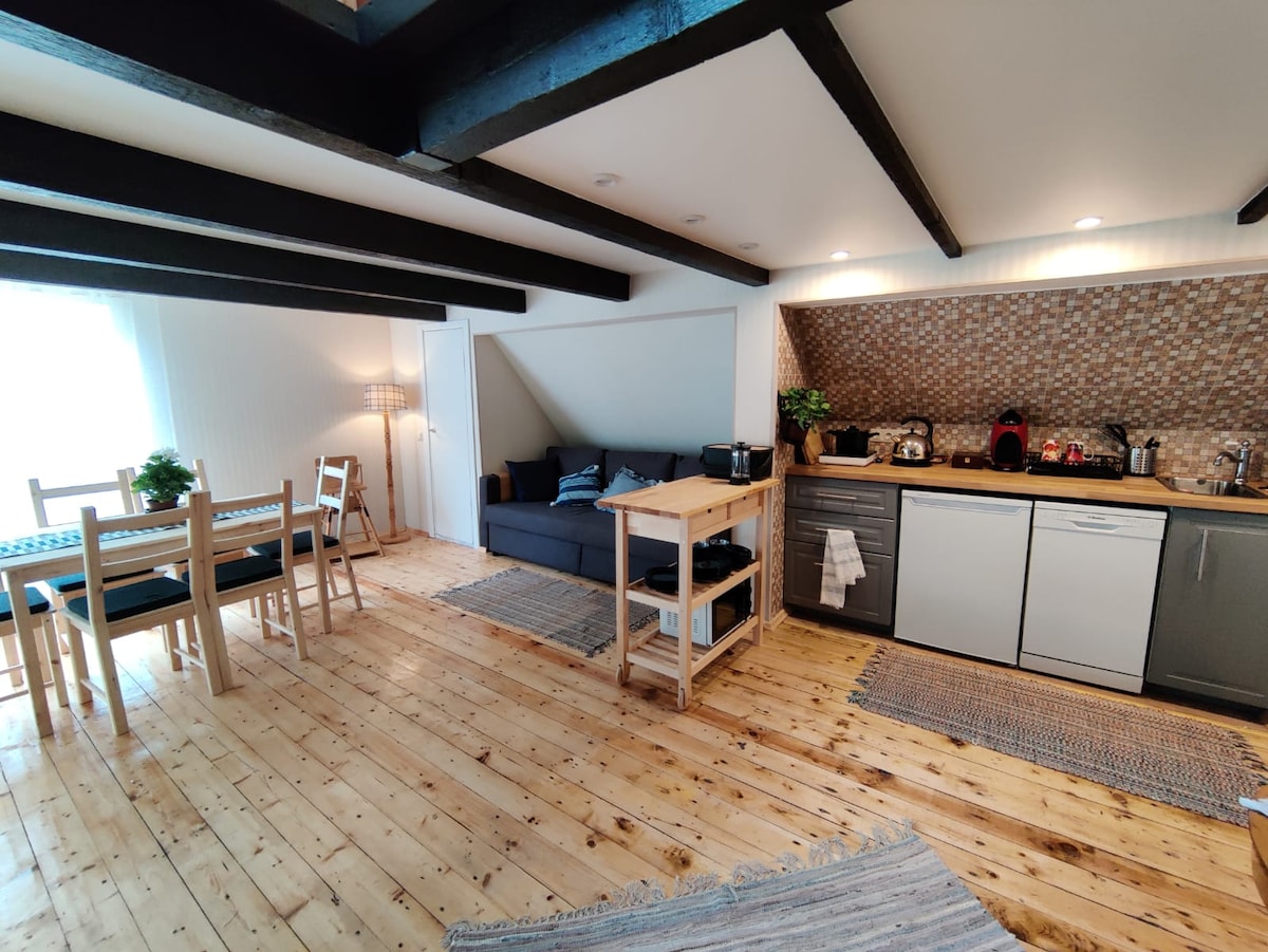 Just 25 minutes from the Old Town, a quiet rest outside the city limits is available. In the house surrounded by the forest, you will be able to hide from the daily rush, listening to the sounds of the forest and birds, relaxing in the bath overlooking nature, watching the stars from the hot tub, enjoying a leisurely breakfast on the spacious terrace or reading a book in the hammock. The apartment also has a grill, a fully equipped kitchen, a fireplace on the terrace, a fireplace and a heat pump for comfort lovers. Lielupe swimming area 800m. Jurmala 10 km.