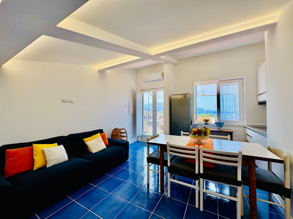 The beautiful apartment was completely renovatedin 2021.The apartment is located on the second floor of an ancient building without elevator. The apartment is tastefully furnished in Mediterranean style,and includes a double bed sitting area, full kitchen marble table and 4 chairs,large wardarobe, 1 television and it is equipped with all the conforts and service, heating and air conditioning,internet wifi.The apartment overlooking the sea with stunning views of the Sorrento Peninsula