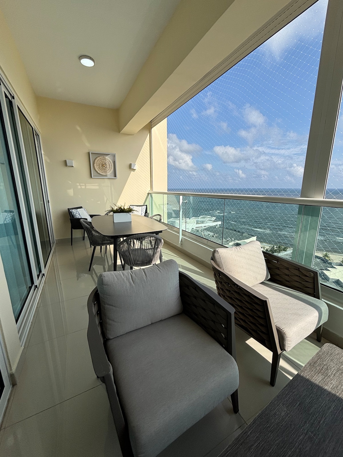 This magical and cozy place in paradise by the Caribbean Sea is your own front row seat to an amazing sunrise and a dreamy sunset. Each space in this beautiful apartment is designed with your comfort in mind. Your stay is guaranteed to be full of unforgettable moments. This spectacular first line beach 23-story luxury condo tower is located just 45 minutes from the city of Santo Domingo and 20 minutes from Las Americas International Airport.