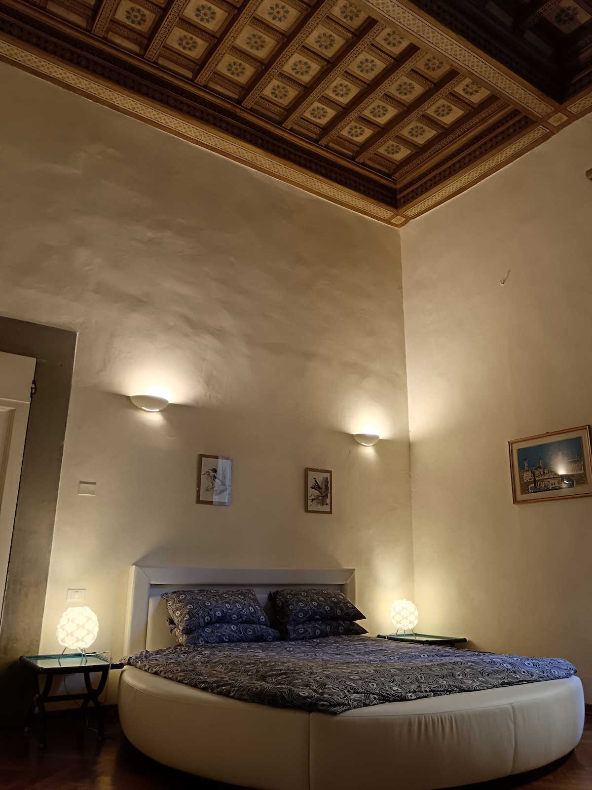 L'appartamento fa parte di un palazzo rinascimentale del 1422. È composto da tre ampi spazi, di circa 50 m2 ciascuno e alti 7 m, che ospitano rispettivamente una cucina con sala da pranzo, un soggiorno studio, una camera da letto e 2 bagni. Ogni stanza è decorata da affreschi che ricordano la storia dell'appartamento dove nel 1573 fu inventato il genere musicale del Melodramma. L'appartamento si trova nel centro storico, tutte le attrazioni turistiche sono raggiungibili in 15 minuti a piedi