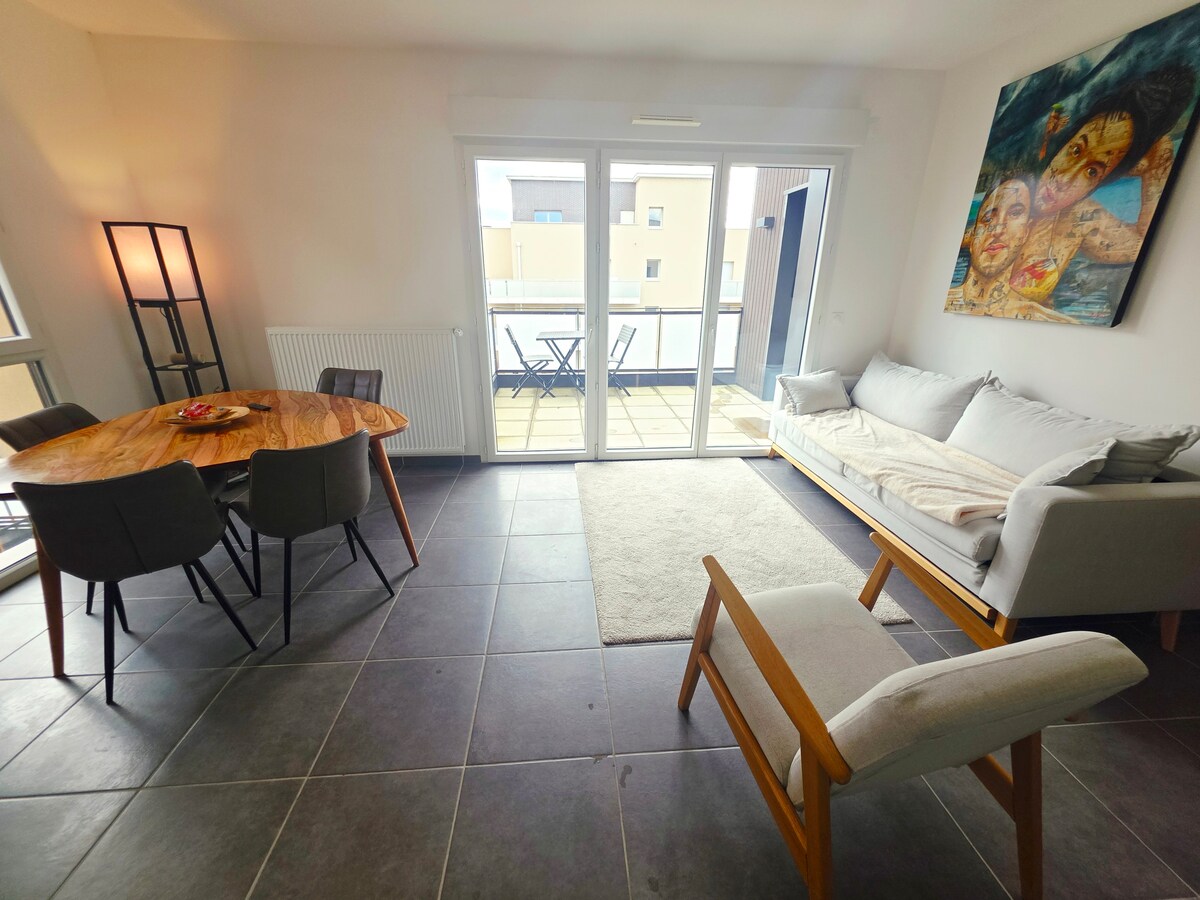 Bright apartment with 2 bedrooms (including 1 double bed and 2 single beds), each equipped with a desk. Living room with sofa bed, Smart TV and access to furnished terrace. Open kitchen, separate laundry room. Fast WiFi. Free visitor parking. 5 min from CERN, close to Geneva and transport. Ideal for professionals, families or long stays. Closed parking included.