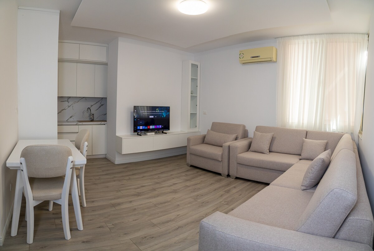 This apartment is located in "Delijorgi Building Complex" about 9 minutes walking from the city center. Everything on this apartment is made with the idea of a premium luxury apartment concept. You can find every facility that you need inside the building complex also outside of it as well. The apartment is brand new and all electronics are chosen with care.