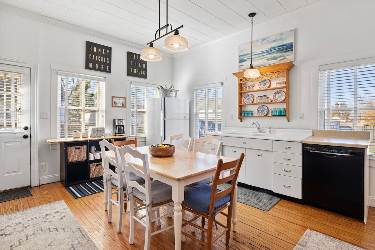 Welcome to Breezy Beach, a bright and cheerful first-floor apartment in the Sunshine House 🌻. With updated amenities, colorful décor, and a prime location near the beach, outlet mall, restaurants, and parks, this spot is perfect for couples, friends, or small families (up to 4 guests). Cook a meal in the fully stocked kitchen 🍳, relax in the comfy queen bed, or enjoy evenings by the outdoor firepit & picnic table. Everything downtown Michigan City has to offer is just a short walk away!