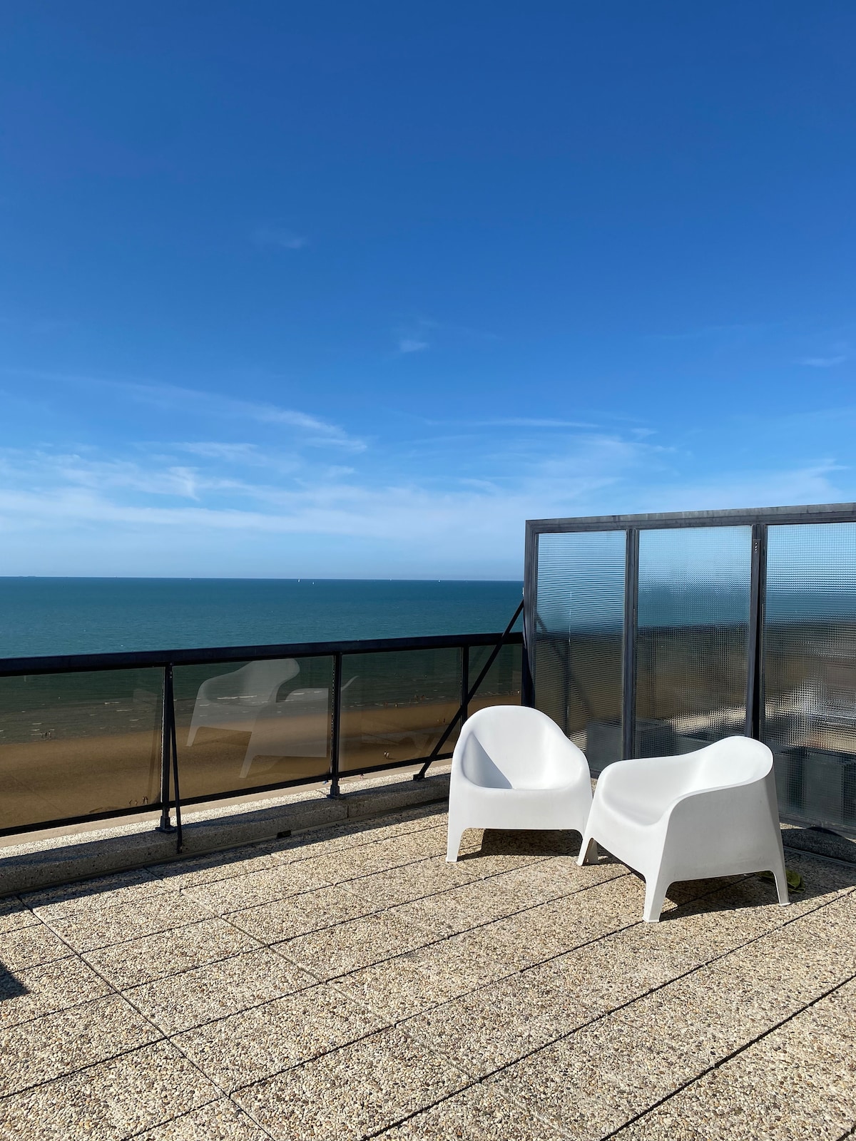 This brand new renovated apartment offers all the luxury you need for a relaxing stay at the beach. The soothing interior mixes an urban with a Scandinavian touch, while the spacious Ibiza style terrace is great for seaview outdoor living. The city centre, shops and the new casino are at walking distance and there are plenty of parking spots just around the corner. Enjoy a permanent late check-out at 1 pm.