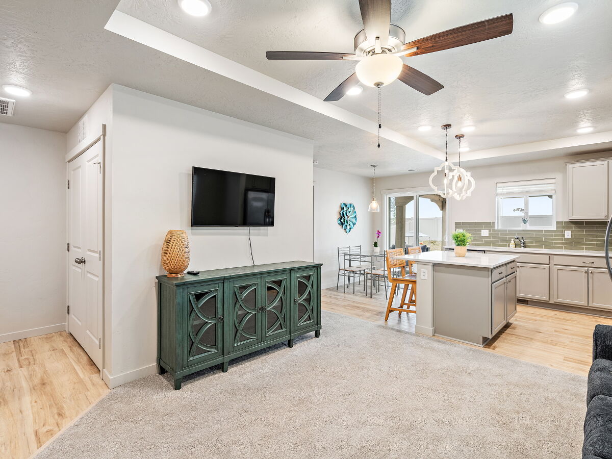 This beautiful home has a great central location. It has high speed internet, capable of sustaining work from home and online learning. It is only a few minutes from the College of Idaho, downtown Caldwell and it is only 6 or 7 minutes away from the freeway. There is a designated covered parking spot, in the shared driveway, with additional street parking. Groceries, shopping and entertainment are only minutes away.