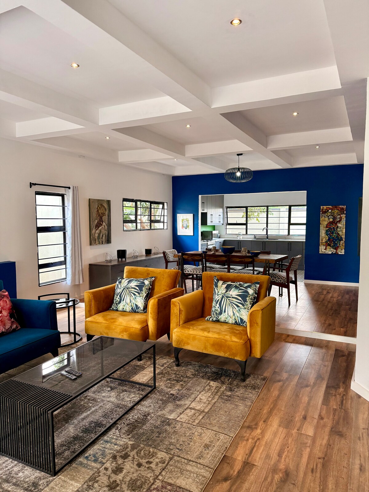 Located in a tranquil neighborhood, this spacious single storey home boasts 2 living and dining areas, large kitchen with plenty of storage and working space, 4 bedrooms and 2.5 bathrooms designed to ensure everyone's comfort. Property has borehole water, solar geyser, backup solar power and limited wi-fi. Enjoy the large garden, a choice of outdoor seating areas, and a large claybrick braai. It is less than 10 mins drive to the CBD with easy access to all major highways.