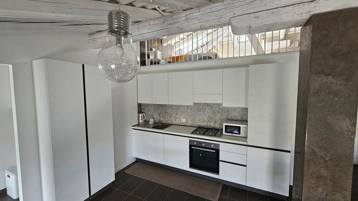 The "Loft Laguna" is a charming retreat in a place where time seems to slow down and every detail tells a story. Located on the ground floor of the historic Palazzo Persico, it has been carefully renovated, blending the authentic charm of country homes with modern comfort. It offers a cozy double bedroom and a bright open-plan living area with a kitchen and sofa bed. An intimate and inviting space, perfect for experiencing a stay filled with elegance, tranquility, and timeless beauty.