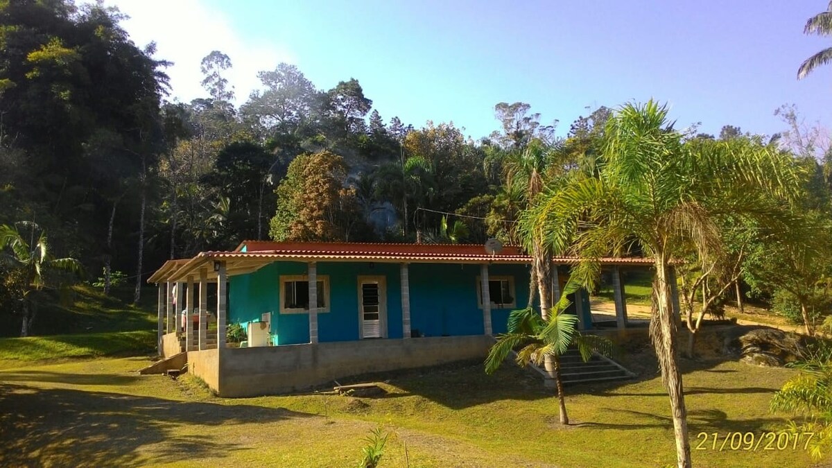 A magical place in an untouched Atlantic Forest reserve to relax and connect with nature - close to São Paulo - private waterfall, pool by the stream and forest views. Safe house with a balcony where you will sleep listening to the tinkling of the waters and wake up refreshed. The caretakers live on the farm in another house some distance away. Flexible checkout if there are no guests the next day ;) - we have a micro chalet for couples on the waterfall trail that is totally private and far from the house.