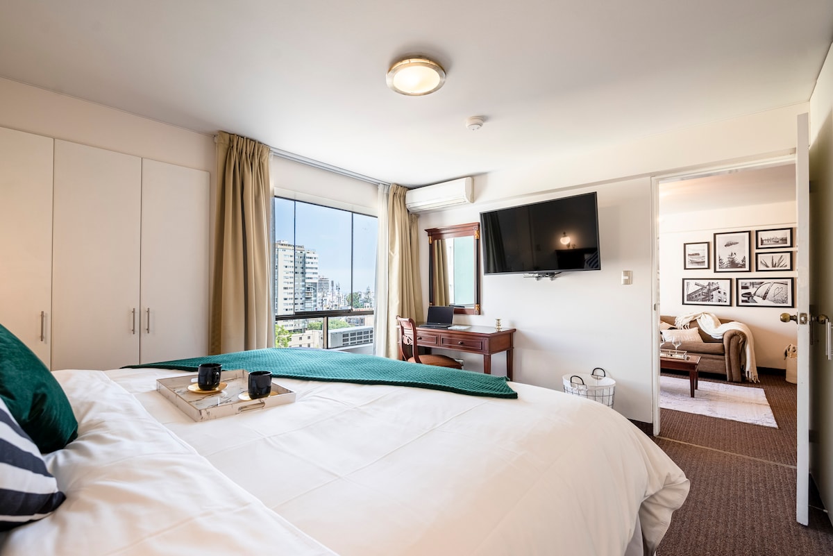 BEST Find! VIP DELUXE Listing w/ 5* Super-Host. Located in Residential Tower/Same Building Hotel Innside Melia. Hotel style 2-suites layout apartment that offers you Premium Top-Quality Customer Service, Prime Central Location, Top Security & Incredible Value. WiFi 400+ Mbps & Parking. Located 2 blocks away from Central Park Kennedy, it will allow you to explore Miraflores within a walking distance to just about everything. It is a corner unit surrounded w/ balconies. Bright, Open & Airy.