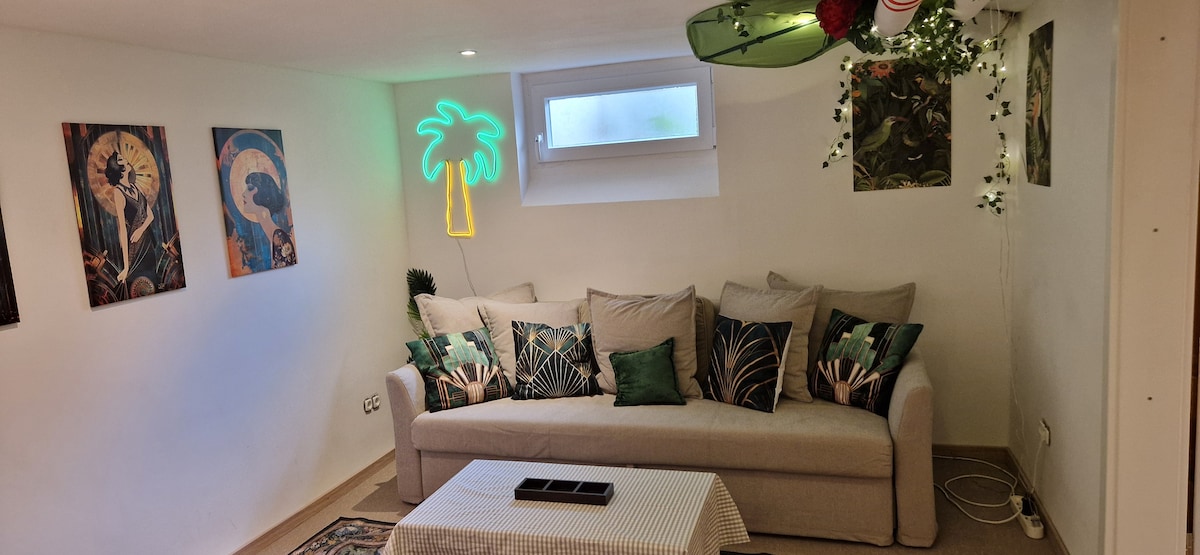 The family-friendly apartment in the historic tower villa with park in southeastern Berlin offers the ideal retreat to explore the capital together. With a spacious kitchen, underfloor heating and fireplace, the apartment in the basement of the villa invites you to a relaxing stay. The spacious bathroom with bathtub offers relaxation after an eventful day. The private entrance guarantees independence, the garden offers space for play and relaxation outdoors.