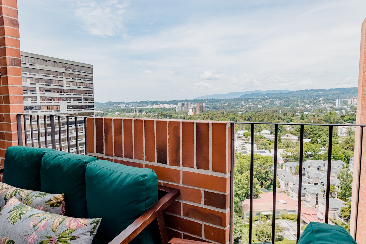Enjoy the experience of staying in a brand new and cozy loft-style apartment in the beautiful country of Guatemala, with the best location in zone 13. Our apartment with modern, elegant touches that accompany an unparalleled view, provide calm and tranquility in one of the most exclusive areas of our country. You'll have the opportunity to stay near malls, restaurants, the hotel zone, and just minutes from the international airport.