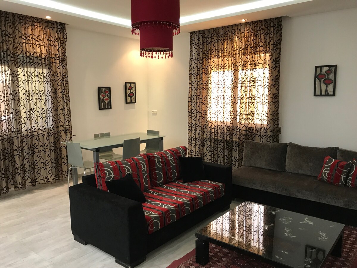 Enjoy a stylish experience at this centrally-located place. The very secure and quiet neighborhood contains all the possible and imaginable amenities within walking distance (supermarket, pastry shop, clinic, medical center, cinema, pharmacy, ministry, faculty...). The apartment located on the ground floor with independent entrance is composed of a kitchen open to the living room, a bedroom with dressing room, a bathroom and another dressing room in the hallway.