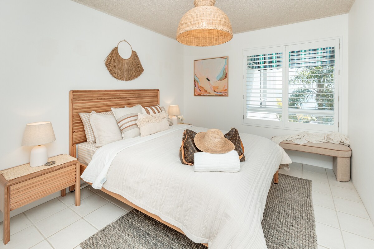 Escape to your own coastal hideaway less than 200m from Moffat Beach’s surf, cafes and brewery. • Ideal for families or friends • Two cottages = space to spread out but still connect • Magnesium pool with spa bubbles & a built-in seat • Private spaces to gather or retreat when needed • Festoon lighting, sun lounges & tropical surrounds • Clean, beachy vibe, original art, & well set-up spaces • Fast WiFi & 2 car spaces Unplug, spread out and settle into the easy rhythm of beach life.