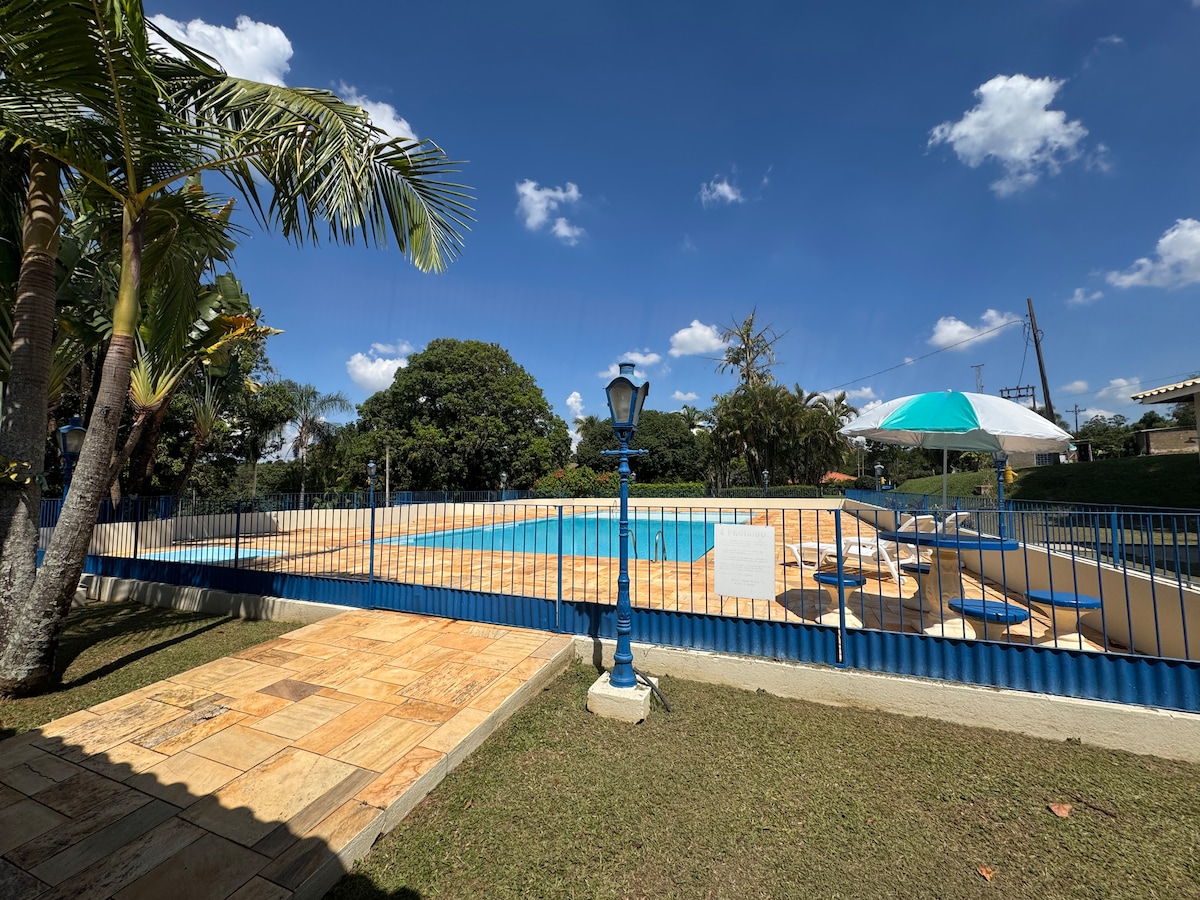 Enjoy incredible moments with your family and friends at our lodging in Mogi Guaçu, near Campinas. 🏡 The Space • Large country house with 4 bedrooms, 8 beds and 3 bathrooms • Integrated living room with living areas • Equipped and practical kitchen 🌞 Outdoor leisure • Exclusive pool • Deck by the lagoon, surrounded by trees 📍 Strategic location • Only 14 km from the Velocitta Race Track, with easy access to the main thoroughfares of the São Paulo region.