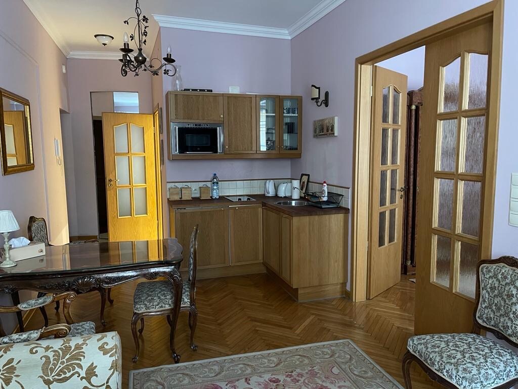 A comfortable, completely renovated apartment ("private hotel room") in the very heart of Warsaw, perfect for a couple, a solo traveler or a group of close friends, for a short stay or a longer one. You are getting the same location and comfort as the Warsaw Sheraton (right next door) for a fraction of the price, and more privacy. It has WiFi, a laundry machine, a fully furnished kitchen, even A/C in summer. Within a short walk is everything to see in Warsaw, from Old Town to Lazienki Park.