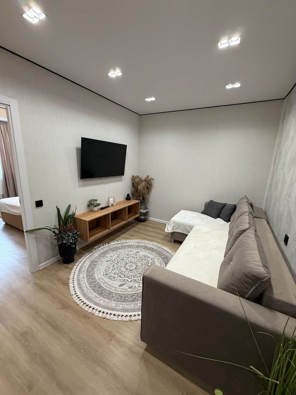This comfortable and spacious apartment is in a quiet and cozy area of the city, with a closed and guarded courtyard, free parking, the apartment is new, fully equipped with appliances and kitchenware , bed linen and towels. There are air conditioners in each bedroom. We are waiting for respectful and responsible guests. Minimum stay of two nights or more.