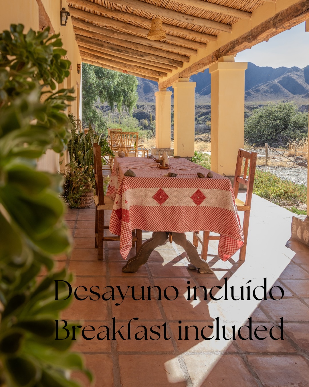 Come and rest and enjoy the magical landscapes on the banks of the Calchaquí River overlooking the mountain range. You have to visit incredible places very close by, such as Las Cuevas de Acsibi, Laguna de Brealito, the town of Molinos, Bodegas, etc. You can hire guides in town to accompany you on these walks and activities, such as learning about looms and clay crafts.