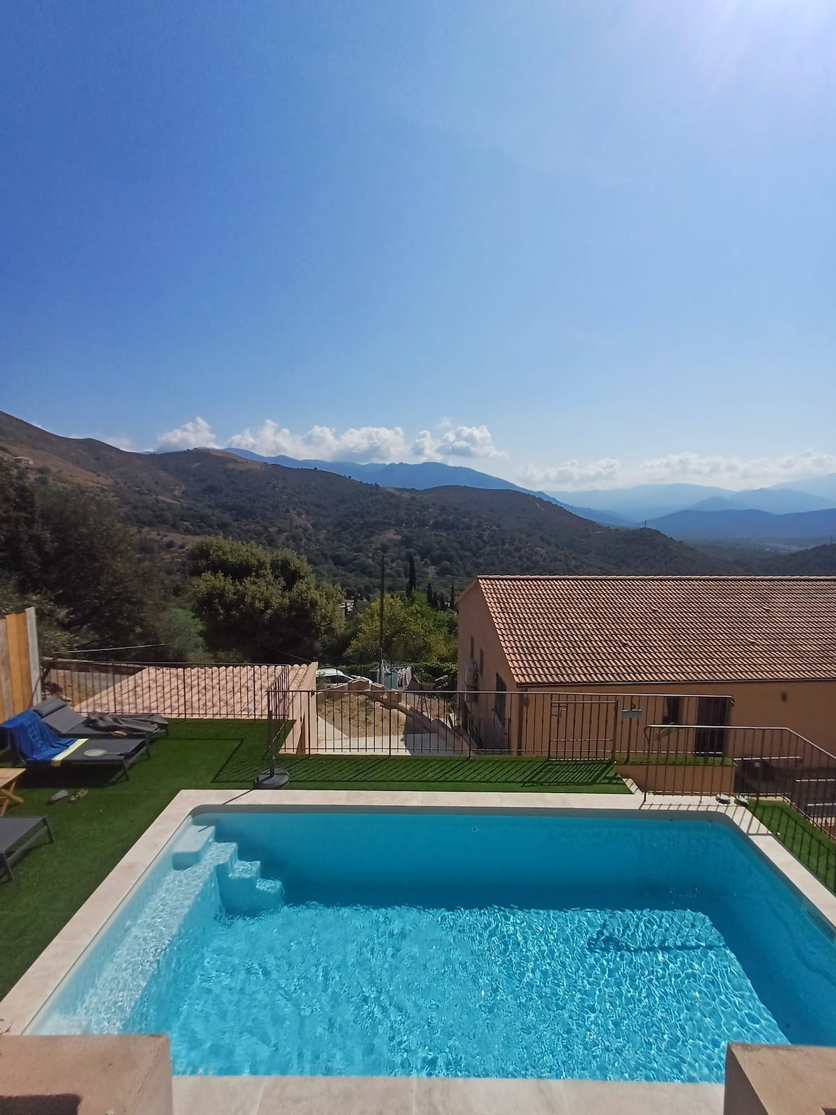 Rez de villa situé entre mer & montagne Composé d'un séjour/cuisine, de 2 chambres, d'une pièce d'appoint (lit 90x190), lave-vaisselle, lave linge, cafetière, Wifi... A l'extérieur coin terrasse, barbecue & piscine privée sont à votre disposition. Accès parc enfant partagé Lit bébé sur demande Parking sans supplément Logement proche de toutes commodités, les 1ères piscines naturelles se situent à 5min de voiture (Gorges d'Asco), la plage de l'Ostriconi (UNESCO) et Corte sont à 25/30min.