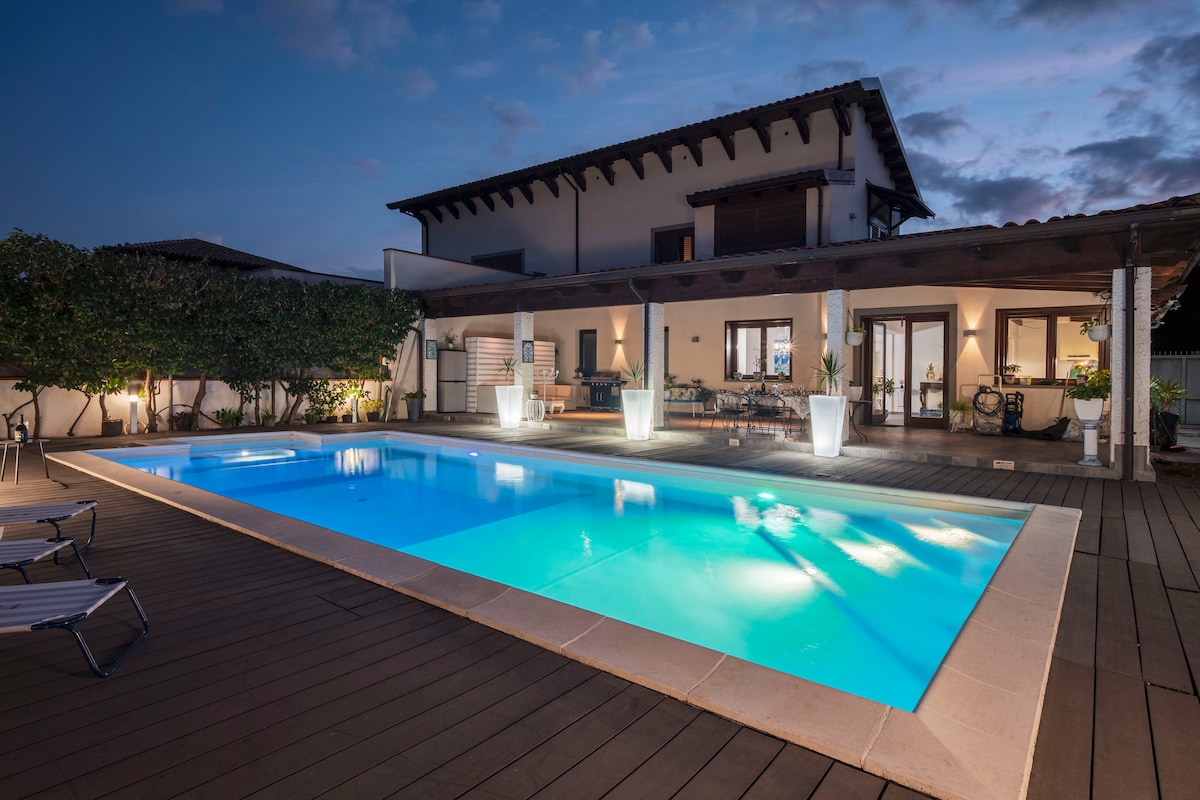 Villa Lorella is a beautiful property, surrounded by greenery, with a pool ready to welcome you for a wonderful vacation in Sicily. This villa includes a main house and a guest house, a total of 8 beds. Both rooms are really comfortable and cared for in every detail. The villa has a large outdoor space with a pleasant English lawn, an outdoor kitchen with a pizza oven, a barbecue, a swimming pool and a heated hot tub.