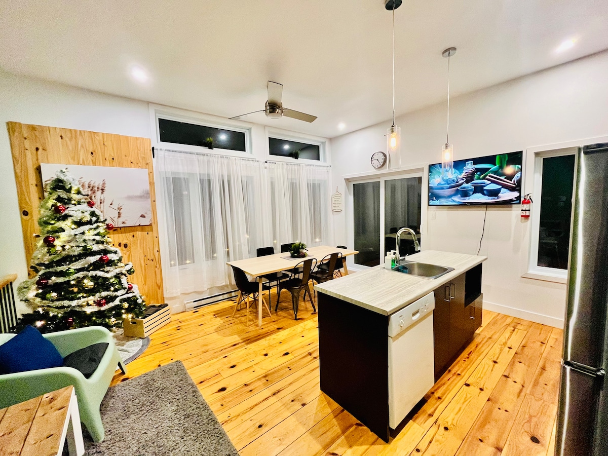 Le Petit Lièvre is a charming 4-season retreat nestled on 5 acres of land in Chertsey, Quebec. Just an hour’s drive from Montreal, this place offers a peaceful getaway for up to 6 people. It features 1 bedroom, 1 loft, 1 bathroom, and amenities like a fireplace, internet access, and a spa. The kitchen is well-equipped, and in winter, you can enjoy the 4 nearby ski resorts (St-Come, Garceau, la Réserve, and Montcalm). Ideal for a nature escape!