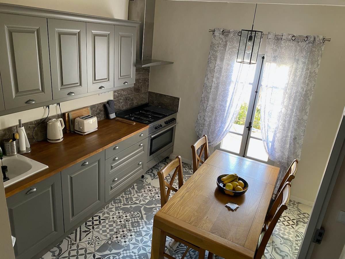 Villa nestled beneath the pine trees in the middle of a vineyard. A 10-minute drive from Mèze and the Thau lagoon. You'll enjoy the private pool to cool off, a large terrace, and hiking trails for strolls. Three bedrooms with double beds and an office with a double bed. You'll have books, a video projector in the living room, and board games to liven up your evenings. A very spacious and charming kitchen is perfect for hosting meals with friends.