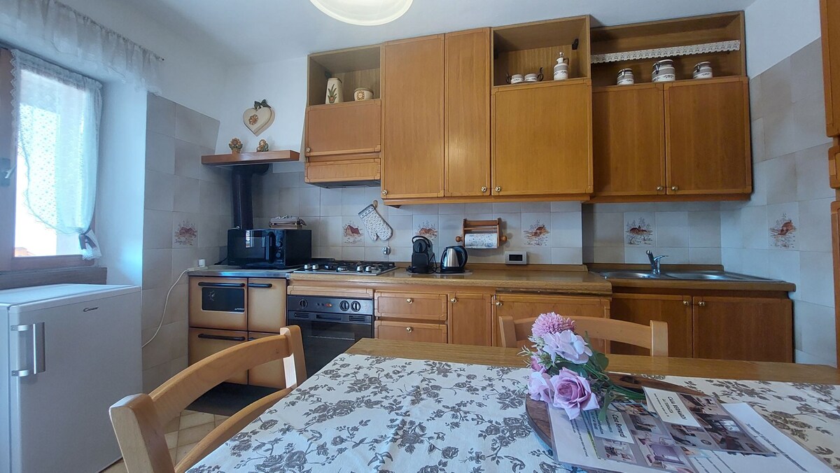 The LE RONDINI apartment offers a wonderful view of pristine landscapes. It features three bedrooms (one double and two singles), a kitchen, a living room, a panoramic veranda, and a balcony. Ideal for families, it accommodates up to four people. Pet-friendly, furry friends of all sizes are welcome. We have a 500-square-meter fenced dog area near the property. Wi-Fi Parking spaces near the property are available.