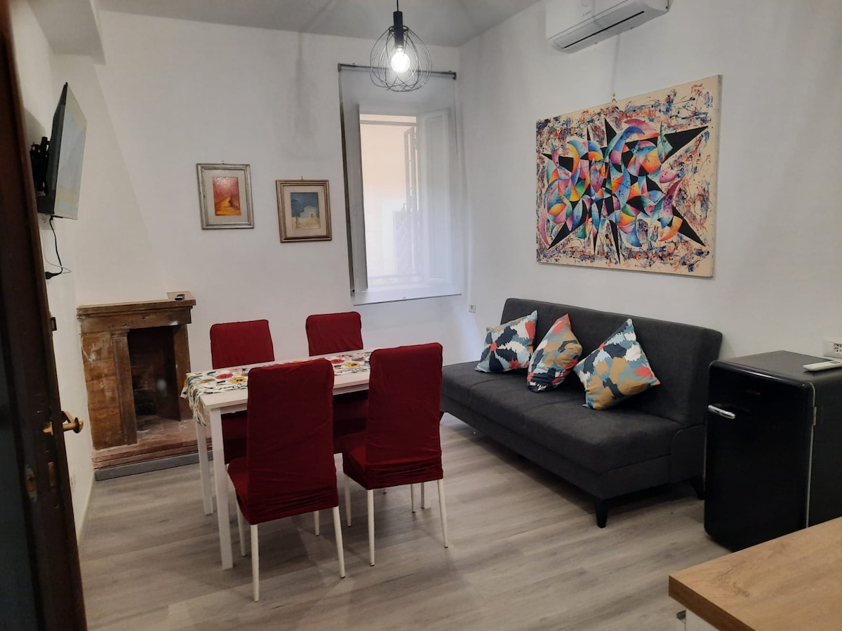 Nice apartment located 500 meters from the Colosseum in the historic center, on the first floor of a building from 1880, with wooden ceilings, elegant, refined and equipped with a romantic terrace. Ideal for a couple, it offers the possibility of having two other kids sleep in the living room where there is a comfortable sofa bed. The accommodation has heating, smart TV, Wi-Fi, washing machine, air conditioning and a full kitchen with dishwasher, kettle, coffee maker and microwave.