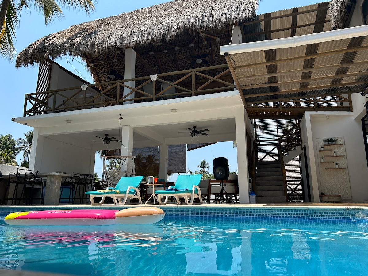 Enjoy a special time with your family on the beaches of Monterrico; in a family house with absolute PRIVACY, it has a perimeter wall, access gate, a beautiful and refreshing PRIVATE pool with a hammock area and 2 bedrooms in the house with AC and 2 double beds per room. 1 full bathroom. 1 bungalow with private bathroom and 3 beds. Large social area open to the pool, equipped kitchen. Living room, dining room, kitchen furniture. Beautiful social area by the pool