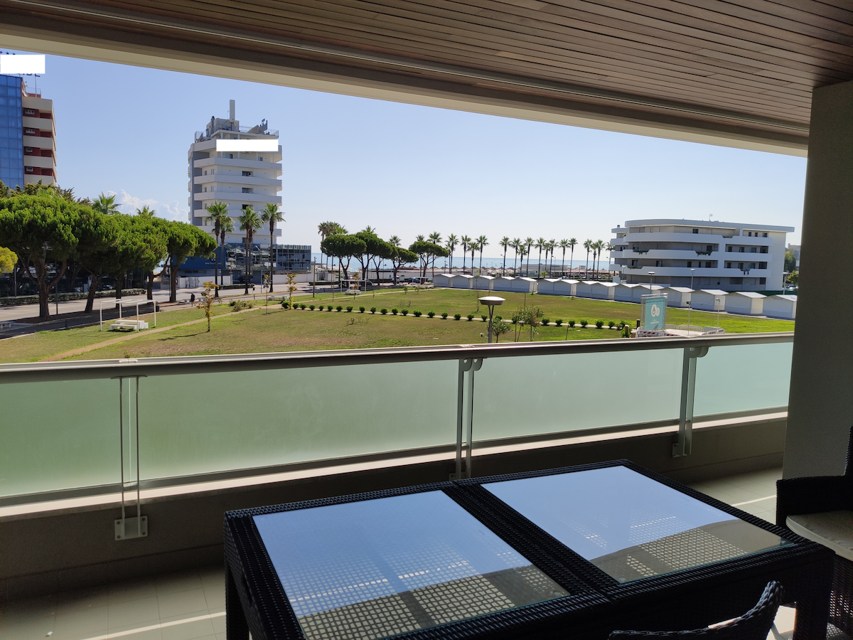 Modern, bright apartment with elegant furnishings, renovated and located on the third floor with elevator. Just steps from the center, station, beach, and park. Features air conditioning, washer and dryer, fully equipped kitchen, large living room with sofa bed, spacious bedroom, study with sofa bed, large covered terrace, and paid private garage. Perfect for comfort and convenience in a strategic location.