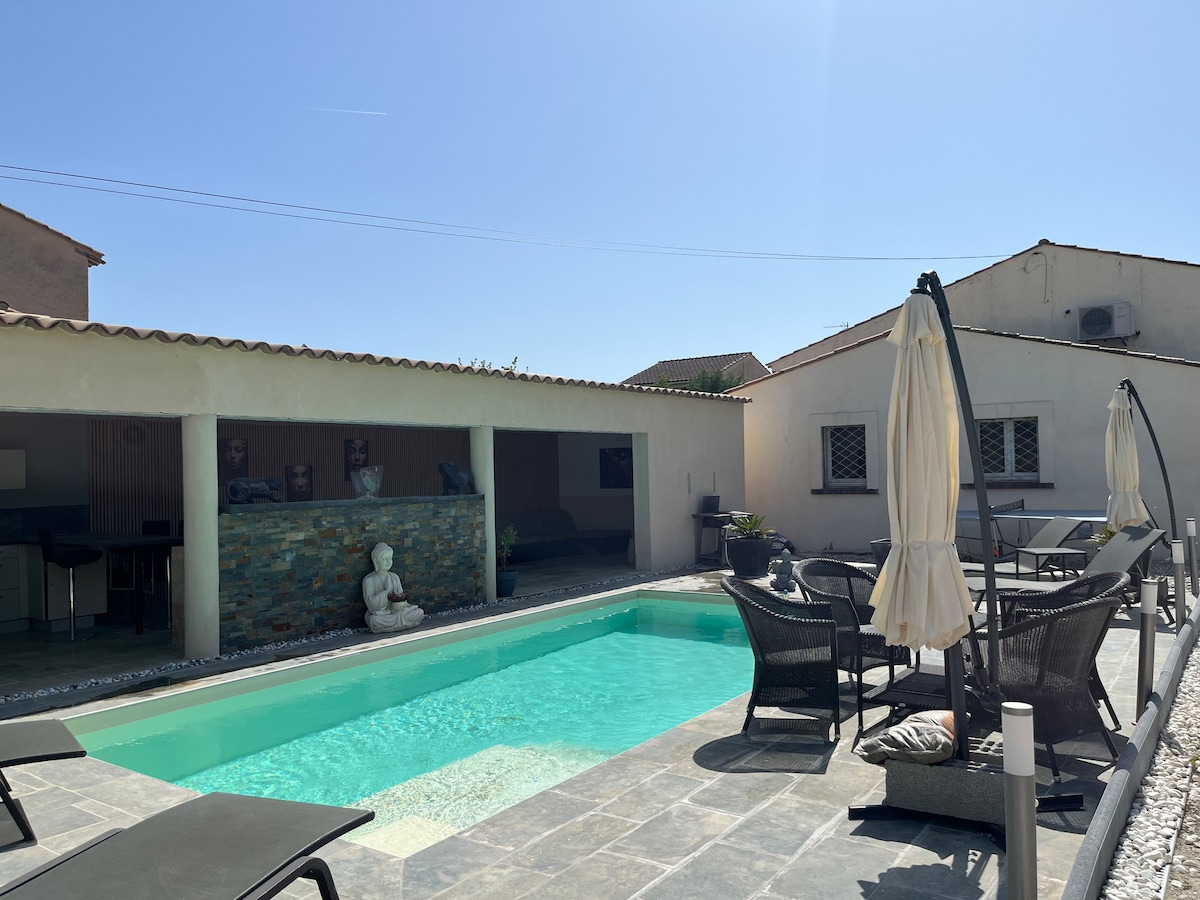 In a green setting, a typical Provencal villa completely renovated and carefully decorated. It has a very large living room with lounge area with billiards and dining room, 2 bedrooms with closet, 1 shower room and double sinks, hairdryer. 1 fully equipped kitchen (oven, stove, microwave, dishwasher, washing machine, kettle, coffee maker). Pergola, plancha, garden, swimming pool, bicycles, ping pong table... Free and secure parking