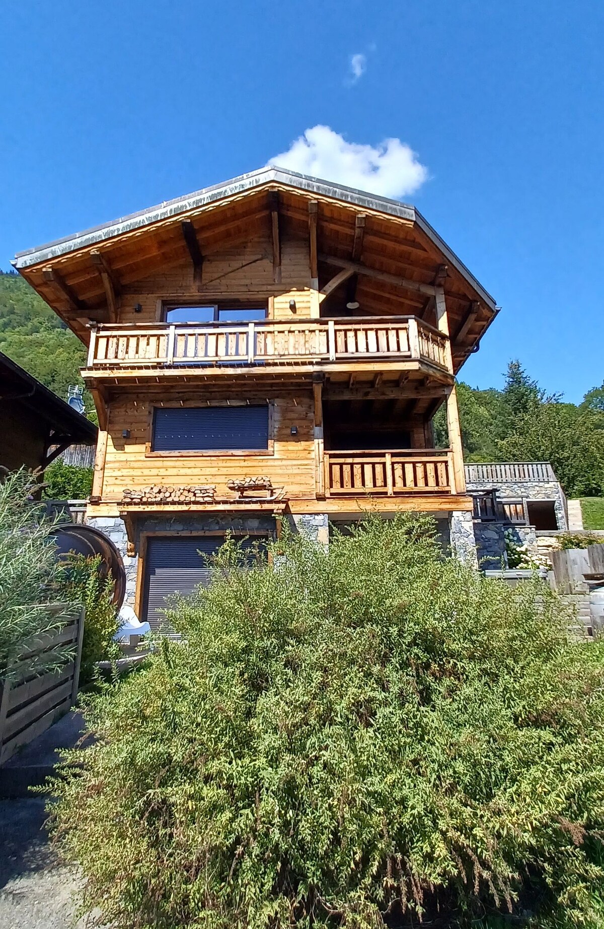 Spacious and independent chalet delivered in 2023 with original architecture. Summer and winter It gives very easy access (5 minutes) to the areas of Morzine and Avoriaz. A shuttle bus passes by in winter to take you to the skiing. Facing south, it is located in a small hamlet typical of Haute-Savoie. A large balcony and private terrace offer views of the surrounding mountains. Modern, well-equipped, it is very functional with its 4 bedrooms and 4 bathrooms.