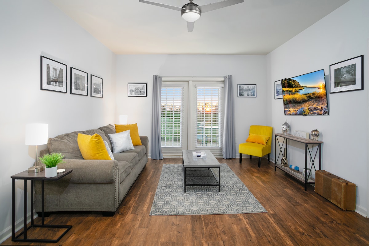 Enjoy a peaceful stay, centrally located in the heart of Madison, just minutes away from Rocket City Huntsville. Furnished for business travelers and long-stay guests. Our spacious one-bedroom apartment is a fully furnished for long stay travelers. We have a resort style swimming pool and professional gym for you to use after a day of work or activities. The apartment is within walking distance to fine dining, coffee shops and a short drive away from concerts, hiking, golfing and nightlife.