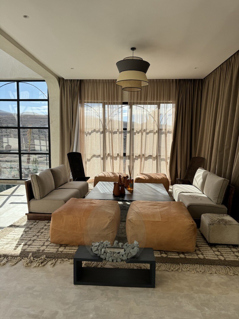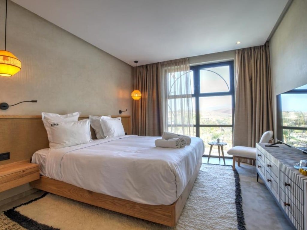 Indulge in luxury and comfort in our beautifully designed suite at The Ranch, located just 10 minutes from Tahannaout and less than 40 minutes from Marrakech. This spacious suite features a king-sized bed adorned with premium linens, ensuring a restful night's sleep.