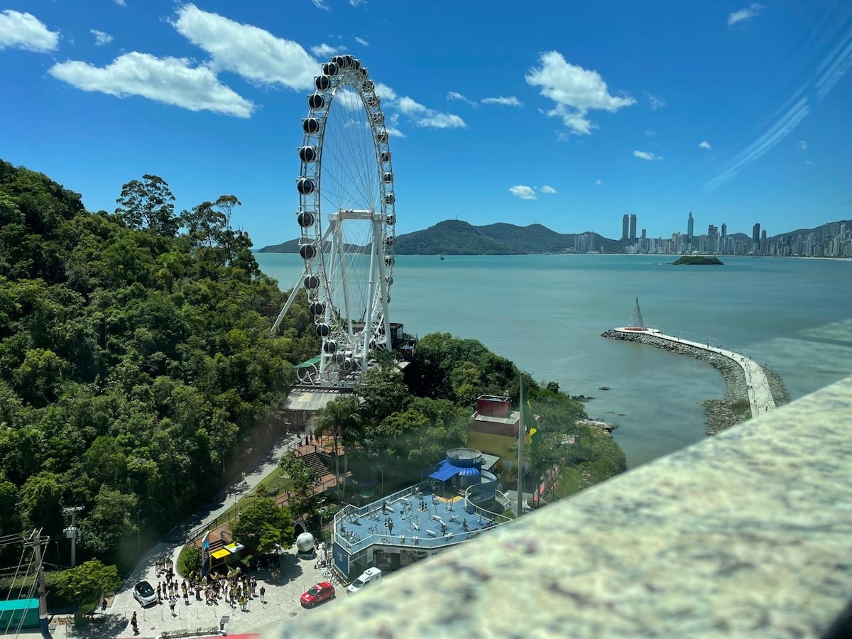 Newly renovated apartment with a privileged view of the entire Balneário Camboriú waterfront and its new attraction: the Big Wheel. Composed of 2 bedrooms, 1 suite, both with new split air conditioning as well as in the living room. Closed balcony with heiki and gas barbecue. We provide bed and bath linens, a kitchen with an island countertop with all the necessary utensils to feel at home!! It has a washer and dryer, and an easily accessible private garage. In the building, access to the swimming pool and fitness center is allowed.