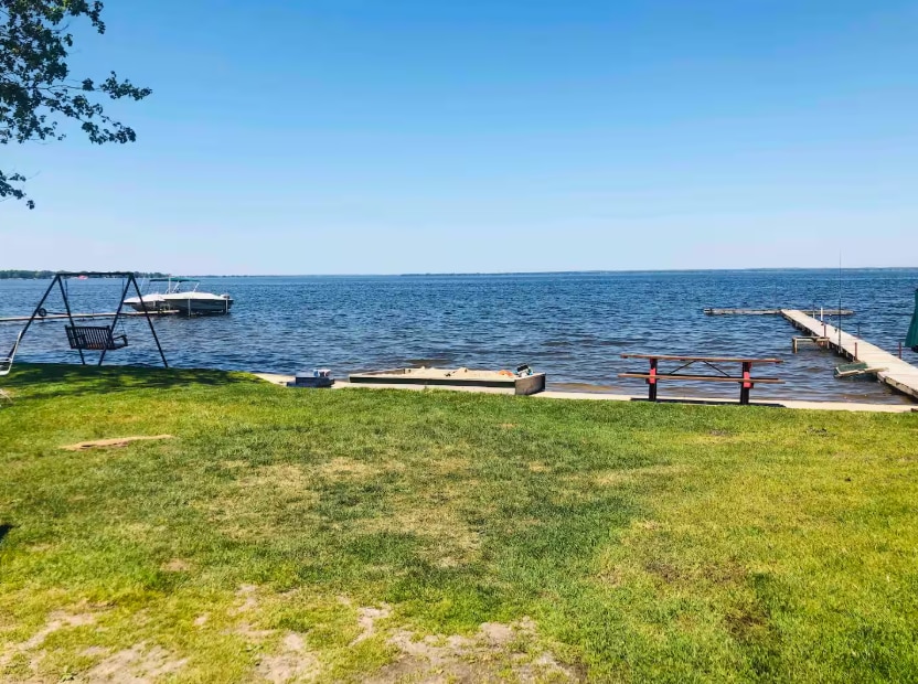 Located on a quiet tree lined road in the woods, and on a peaceful lot overlooking Grass Lake in Mid Michigan's Gladwin. This waterfront cabin is the perfect place to get away and enjoy "Pure Michigan" with all the comforts of home. The morning and evening views are phenomenal! Enjoy the quiet, secluded beauty and serenity of this property. The 900 square foot spacious home also boasts views from the massive 1500 square foot deck, a built in gazebo, and a three season porch with seating.